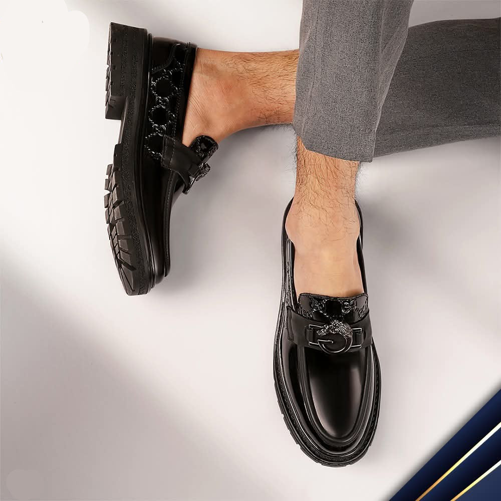 حذاء لوفر رجالي فاخر مصنوع من جلد عالي الجودة بلمعة أنيقة، يتميز بتطريز جانبي راقٍ وحلية معدنية أمامية تضيف لمسة فخامة مميزة. مزوّد بنعل قوي ومتين يوفر ثبات وراحة أثناء المشي، مما يجعله مثاليًا للإطلالات الرسمية والمناسبات الخاصة متوفر بألوان: أسود – بني – هافان